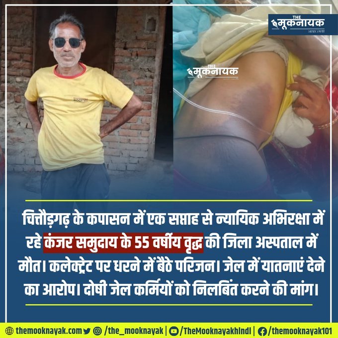 A 55-year-old man from the Kanjar community, who was in judicial custody for a week at Kapasan in Chittorgarh, died in the district hospital. Relatives sitting on dharna at the collectorate. Alleged torture in prison. Demand to suspend the guilty jail personnel.