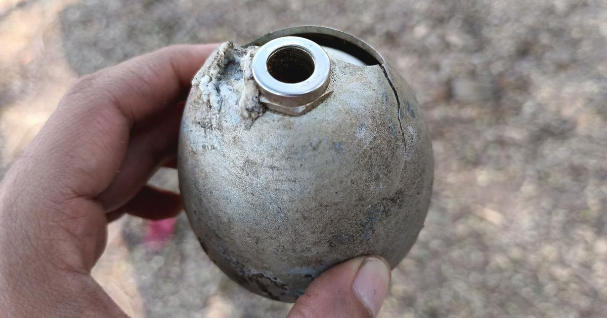 This hemispherical object was purportedly part of projectiles that Adivasi villagers in Bastar allege rained down on a forested hill on April 7. | Arunabh Saikia