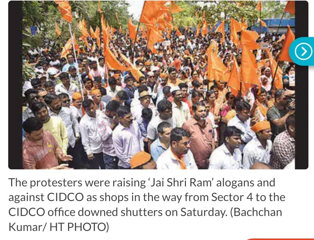 Ulwe, Maharashtra: Skal Hindu Samaj organised a massive protest to oppose the move of City and Industrial Development Corporation (CIDCO) proposed allotment of a plot for a mosque. The protesters threatened to demolish the mosque, if constructed.