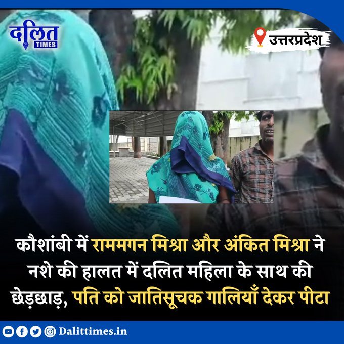 Uttar Pradesh: In Kaushambi, Rammagan Mishra and Ankit Mishra molested a Dalit woman in a drunken state, thrashed her husband by hurling casteist abuses