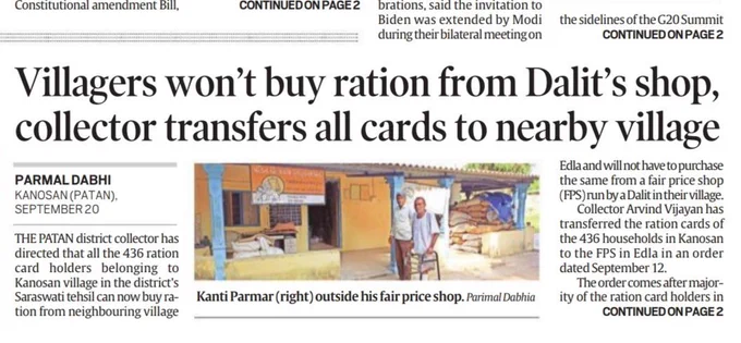 Caste Hindu villagers won’t buy ration from Dalit’s shop, collector transfers all cards to nearby villages. The collector has transferred the ration cards of the 436 households. Couldn’t the Collector have canceled their cards? The Collector supported those practicing Casteism.