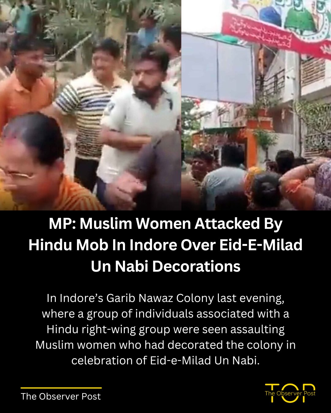 This is from Indore, MP. Muslim women attacked by a group of men associated with Hindu RW group over Did Milad-un-Nabi decoration.