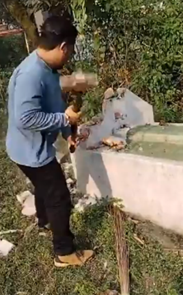 Location: Sudhowala, Dehradun, Uttarakhand Hindu extremists demolish another shrine with sledgehammers.