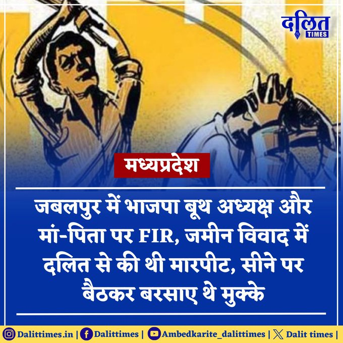 Madhya Pradesh: FIR against BJP booth president and his parents in Jabalpur, for beating up a Dalit over a land dispute and punching him while sitting on his chest.