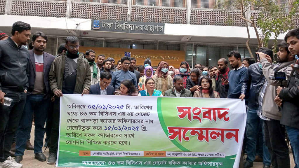 Some of the candidates excluded from the 43rd BCS examination held a press conference at Dhaka University, calling for their reinstatement by 5 January and appointment by 15 January.