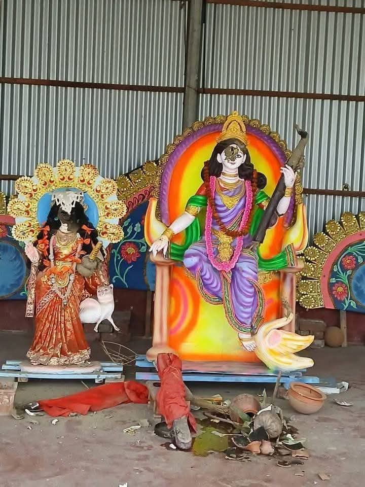 Around 3 AM last night, attackers arrived in a private car at Sholohati village under Turag Thana, Dhaka North City Corporation. They broke the lock of Sholohati Durga Temple, vandalized the idols, and fled the scene.