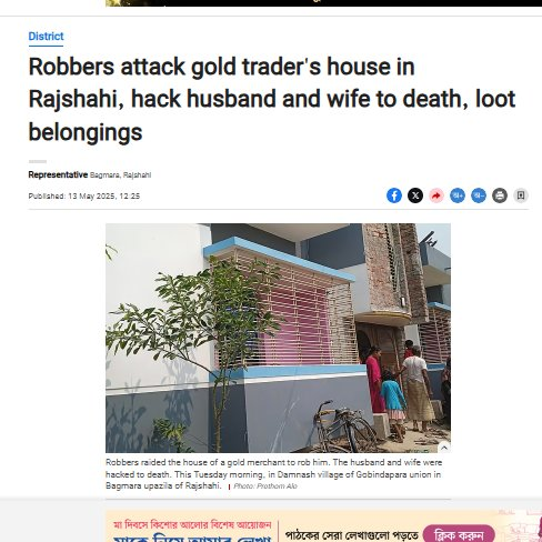 Savar, Mon Mar 10, 2025 12:34 AM Robber hacked a gold trader to death