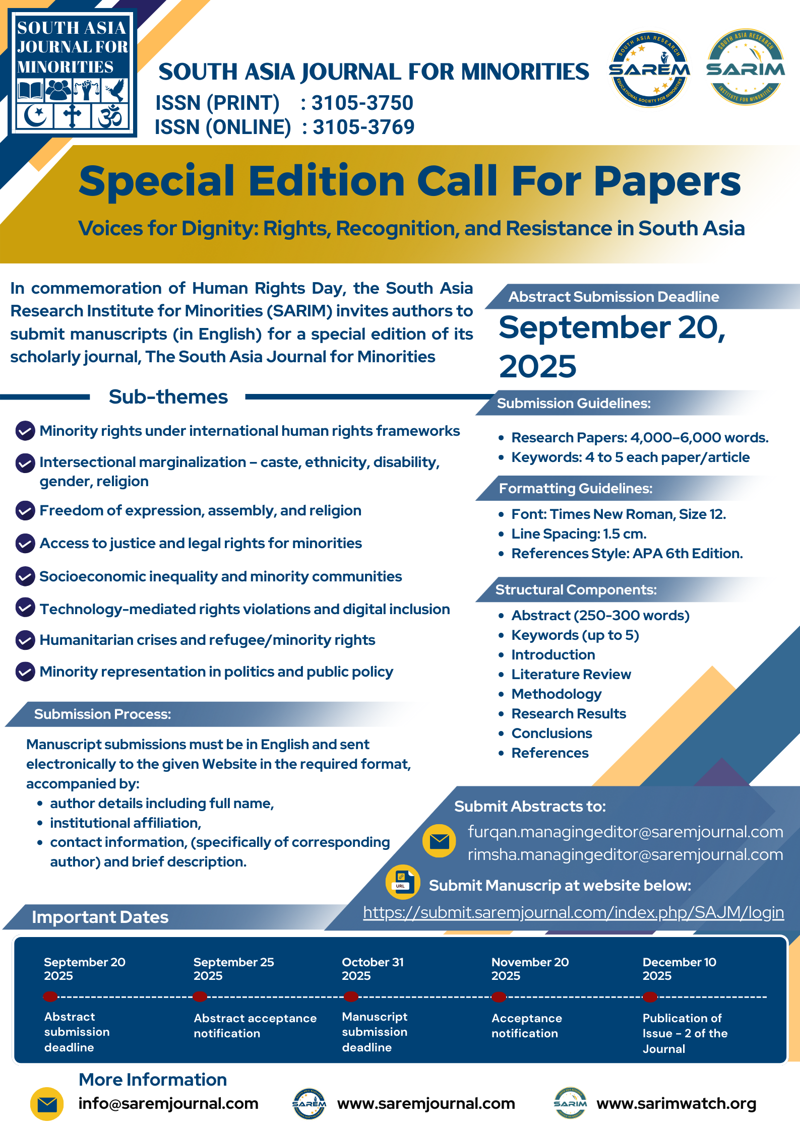 Voices for Dignity: Rights, Recognition, and Resistance in South Asia South Asia Journal for