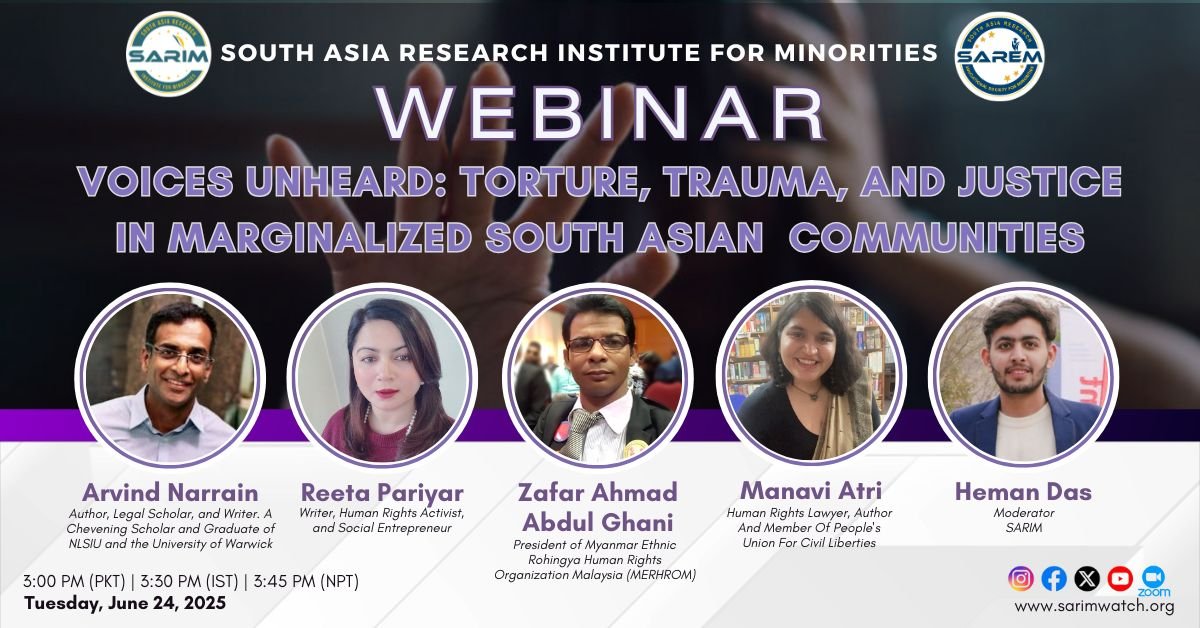 South Asia Research Institute for Minorities International Webinar: Voices Unheard: Torture, Trauma, and Justice
